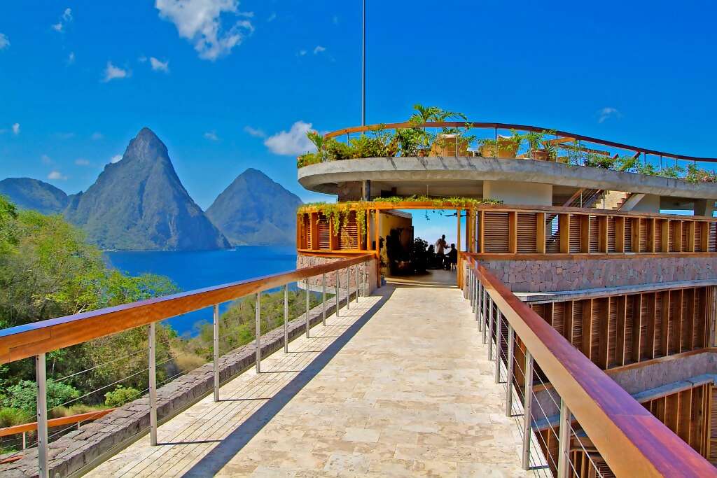 Wedding ceremonies are limited to one a day. There is no dedicated “wedding chapel”; instead, the bride and groom may choose their own “very special location” either at Jade Mountain or at the sister property Anse Chastanet. Location choices include the Jade Mountain's Celestial Terrace, the Anse Chastanet and Anse Mamin beaches belonging to the 600 acre estate, the resorts' old colonial plantation with 18th century remains, a nearby waterfall, the coral reef or the privacy of a Jade Mountain sanctuary.
