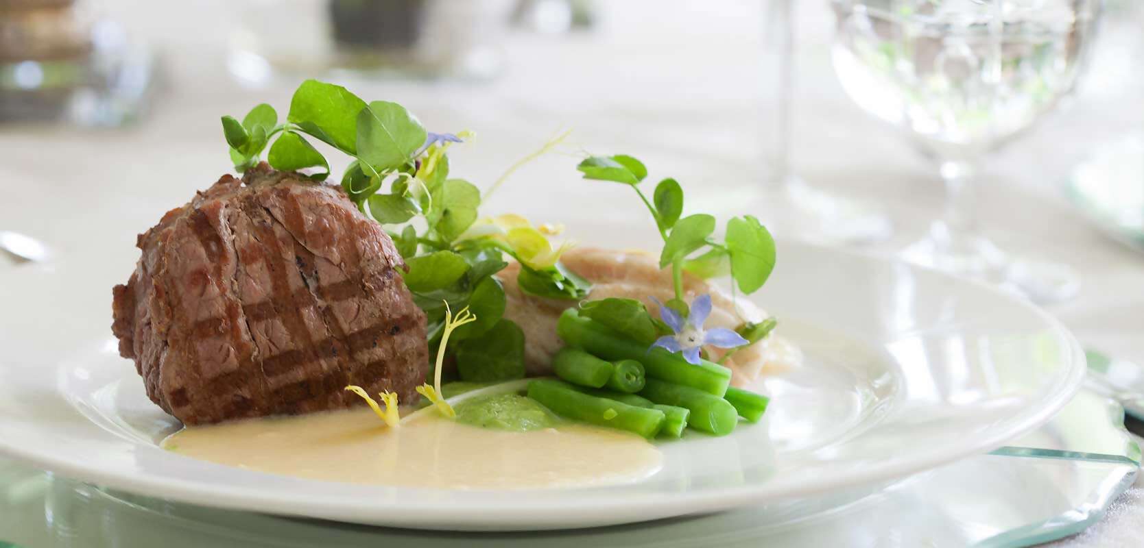 You've tied the knot, and now it is time to celebrate in paradise with the ones you love most. Follow your Pure Glamour ceremony with a carefully coordinated reception. Each detail has been perfectly paired, from the sparkling ivory table linens to the pearled napkin rings and mirrored charger plates. Add a delicious chef inspired four-course menu, pair it with Jackson Family Wines, and your private reception will transcend even your highest expectations.