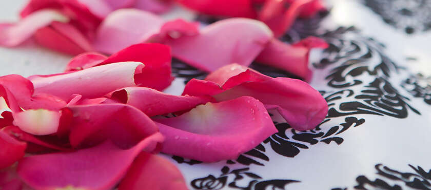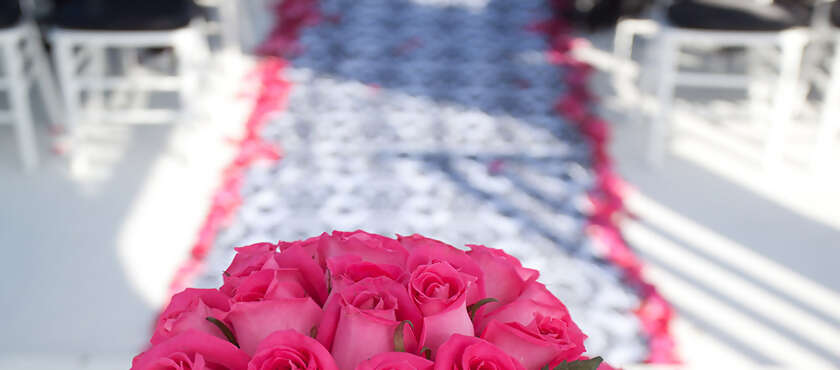 - Damask Aisle Runner with Fuchsia Rose Petals