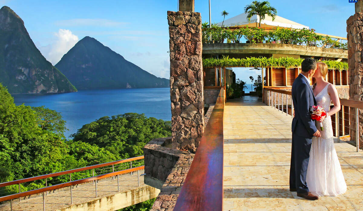 No hassle: Jade Mountain will arrange for all legal documents and legal processing. Legal documents are prepared prior to arrival, based on a questionnaire to be filled in. Required for preparation are copies of passports and/or birth certificates together with photo ID and, if applicable, copy of divorce documents showing the final decree (decree absolute) with stamp and seal. All documents must be presented in their original on island. Jade Mountain requires a minimum 2 business days (not Sat/Sun or a holiday) to process the wedding application post arrival. Against a governmental rush fee, weddings can be processed within a 24 hour period.
